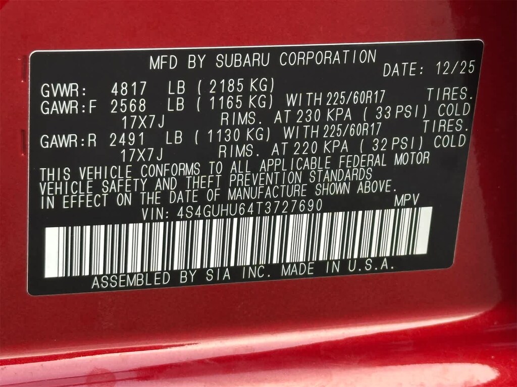 All Wheel Drive, Heated Driver Seat, Back-Up Camera, Satellite Radio, iPod/MP3 Input Subaru Wilderness with Lithium Red Pearl exterior and Black interior features a 4 Cylinder Engine with 180 HP at 5800 RPM*.