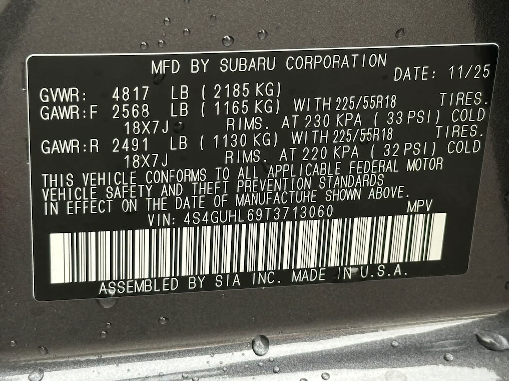 - Front tires: 225/55VR18.0
