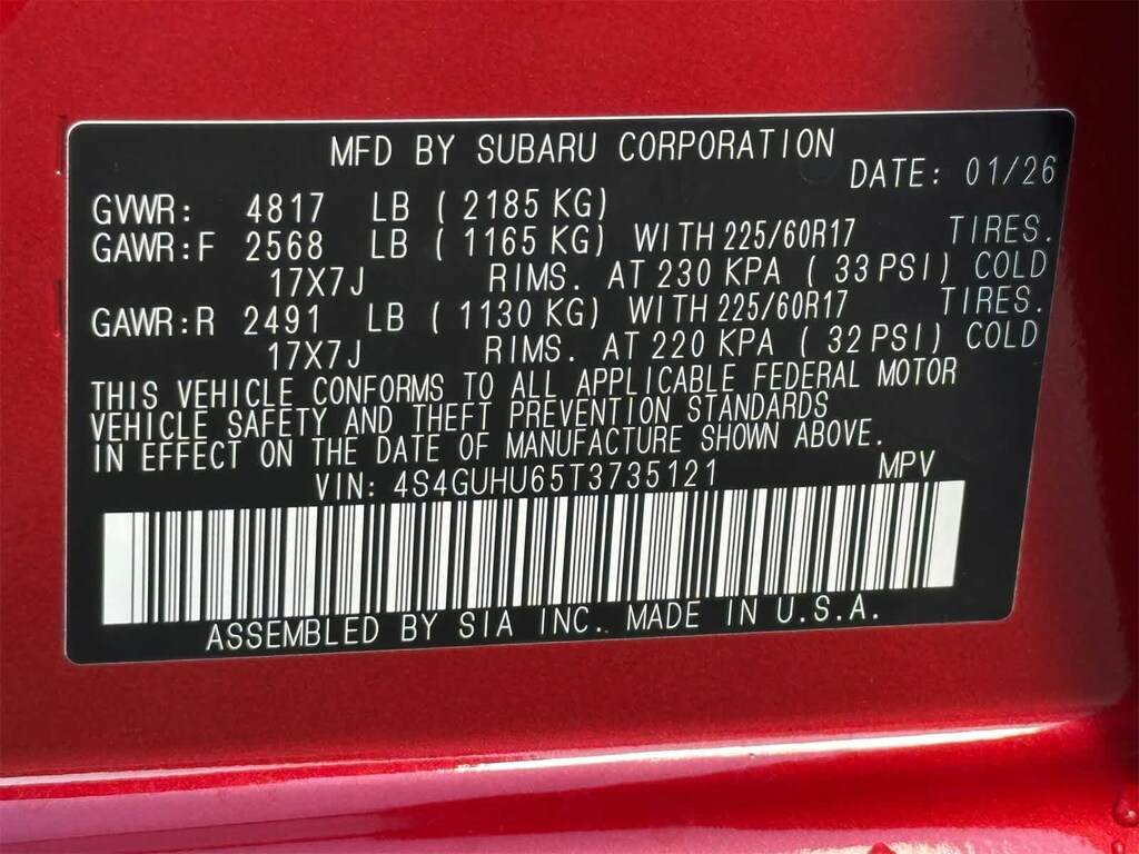 All Wheel Drive, Heated Driver Seat, Back-Up Camera, Satellite Radio, iPod/MP3 Input. Subaru Wilderness with Lithium Red Pearl exterior and Black interior features a 4 Cylinder Engine with 180 HP at 5800 RPM*.