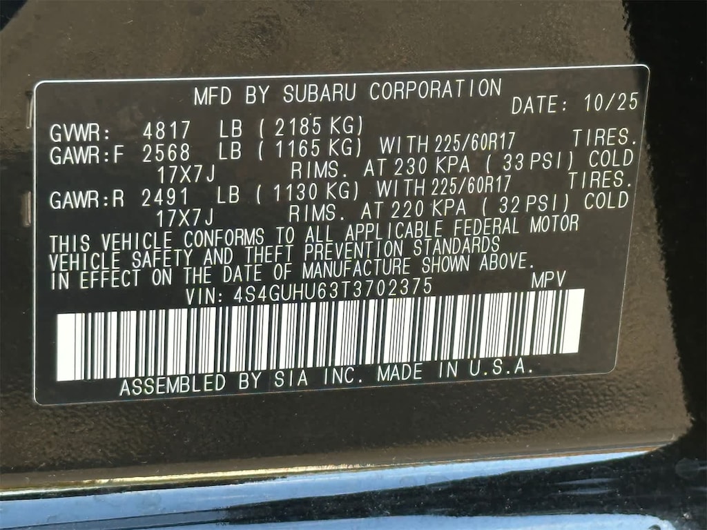 - 4S4GUHU63T3702375