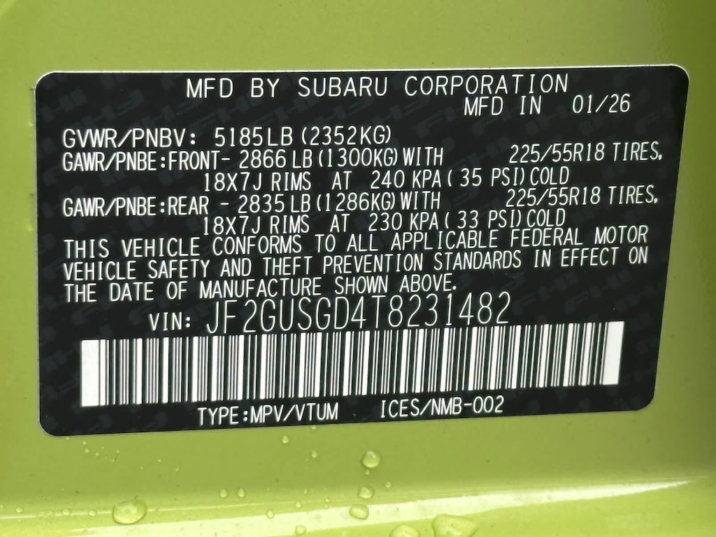 - Front tires: 225/55VR18.0