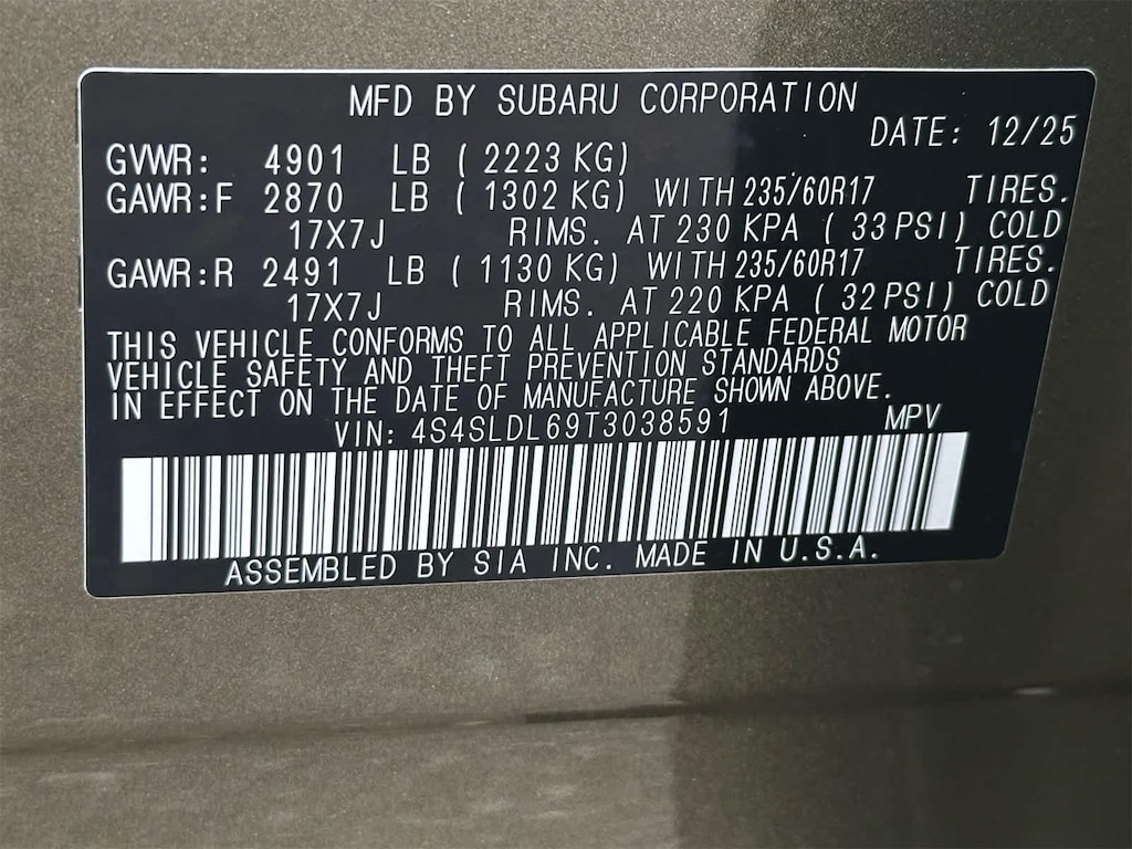 - 4S4SLDL69T3038591