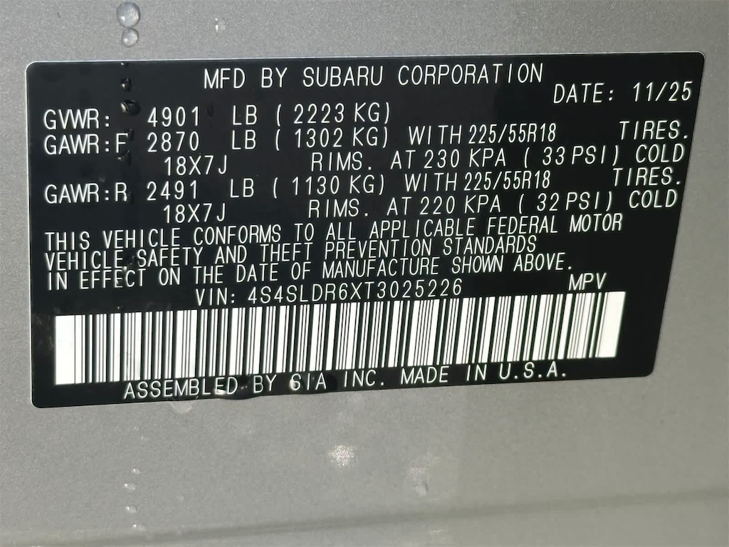 - Front tires: 225/55VR18.0