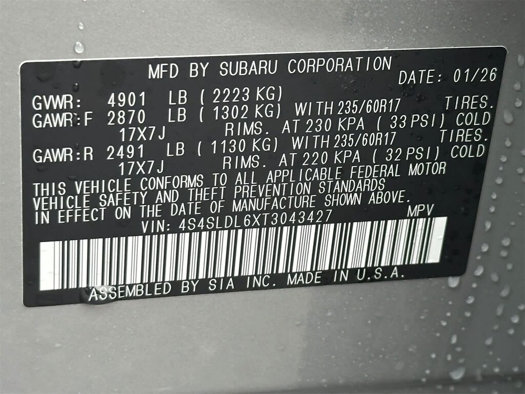 - 4S4SLDL6XT3043427