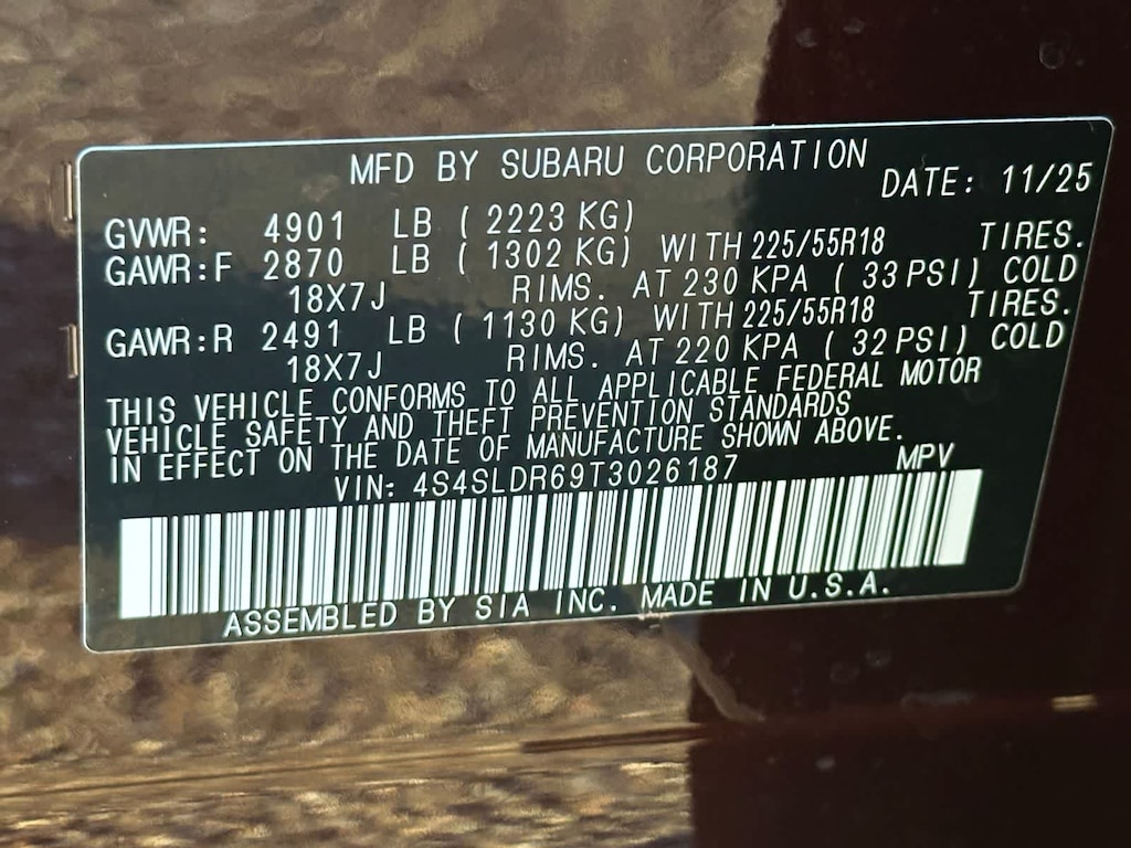 - 4S4SLDR69T3026187