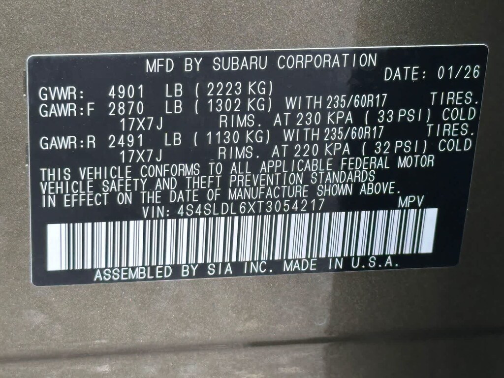 - 4S4SLDL6XT3054217