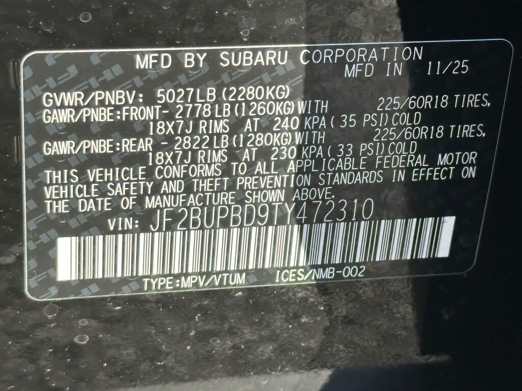 - Front tires: 225/60HR18.0