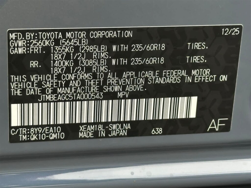 - Rear tires: 235/60VR18.0