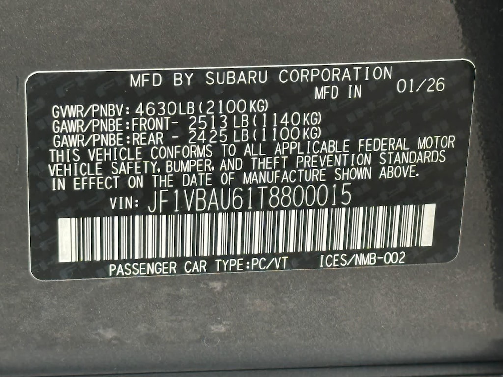 - JF1VBAU61T8800015