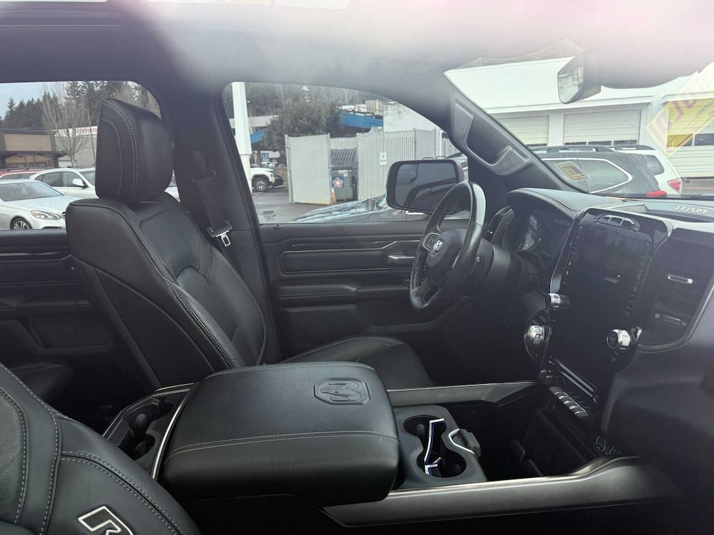 REBEL LEVEL 2 EQUIPMENT GROUP Radio: Uconnect 4 w/8.4 Display, Rear Window Defroster, Rain Sensitive Windshield Wipers, ParkSense Front/Rear Park Assist w/Stop, Power Adjustable Pedals, Rear Dome w/On/Off Switch Lamp, Body Color Door Handles, 115V Auxiliary Rear Power Outlet, Media Hub w/2 Charge Only USBs, Auto Dim Exterior Driver Mirror, Rear Underseat Compartment Storage, Heated Front Seats, Heated Steering Wheel, Foam Bottle Insert (Door Trim Panel), Security Alarm, Black Premium Power Mirrors, Remote Start System, Exterior Mirrors w/Supplemental Signals, Exterior Mirrors Courtesy Lamps, Air Conditioning ATC w/Dual Zone Control, Remote Proximity Keyless Entry, Universal Garage Door Opener, Power-Folding Mirrors, Sun Visors w/Illuminated Vanity Mirrors, REBEL 12A Radio: Uconnect 12 w/Navigation, Google Android Auto®, SiriusXM Traffic Plus, USB Host Flip, Disassociated Touchscreen Display, HD Radio, For Details, Visit DriveUconnect.com, Integrated Center Stack Radio, 1-Yr SiriusXM Guardian Trial, 12 Touchscreen Display, GPS Navigation, SiriusXM Travel Link, 4G LTE Wi-Fi Hot Spot, SiriusXM w/360L, Apple CarPlay®, LED Footwell Lighting, 9 Amplified Speakers w/Subwoofer, ENGINE: 5.7L V8 HEMI MDS VVT Active Noise Control System, Heavy Duty Engine Cooling, Dual Exhaust w/Black Tips, GVWR: 7,100 lbs, HEMI Badge, 220 Amp Alternator, DUAL-PANE PANORAMIC SUNROOF Premium Overhead Console, Dome Dual LED Reading Lamp, Overhead LED Lamps, COMFORT/CONVENIENCE GROUP Wireless Charging Pad, Power 4-Way Passenger Lumbar Adjust, Remote Tailgate Release, Exterior Mirrors w/Memory, Heated Second Row Seats, Driver Seat Memory, Power 8-Way Driver & Passenger Seats, MOPAR SPRAY IN BEDLINER, NIGHT EDITION Black Front Bumper w/Black Plate, Wheels: 18 x 8.0 Gloss Black, Grille Moustache Black Outline Texture 3, RAM Grille Badge - Black, REMOTE START SYSTEM, TRANSMISSION: 8-SPEED AUTOMATIC (8HP75), BLACK, LUX LEATHER TRIMMED BUCKET SEATS Heated Front Seats, Heated Steering Wheel, Power 4-Way Passenger Lumbar Adjust, Power 8-Way Driver & Passenger Seats.
